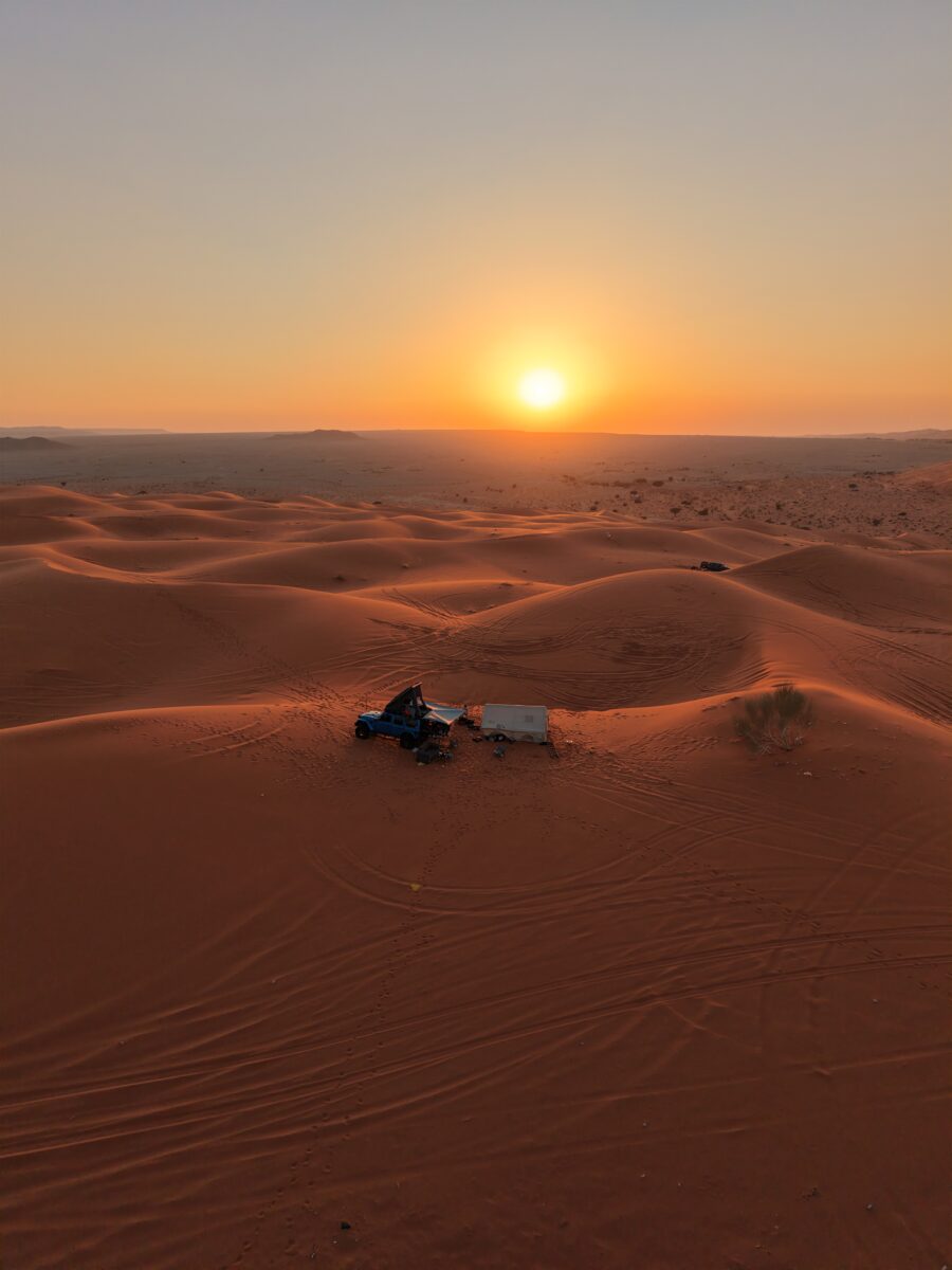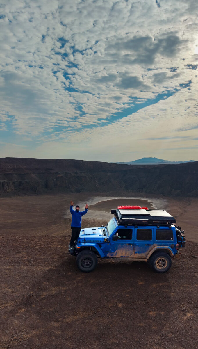 Mohammed’s vehicle is a 2023 Jeep Wrangler. This rig serves as his trusted base camp, a modern mechanical camel prepared for long stretches of asphalt and challenging off-road tracks. It is the starting point for every adventure.