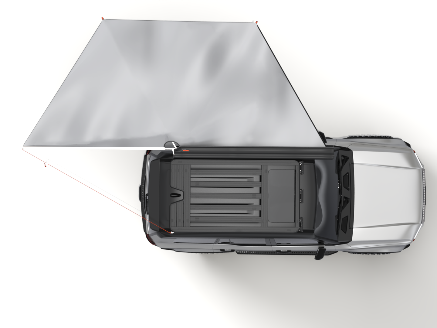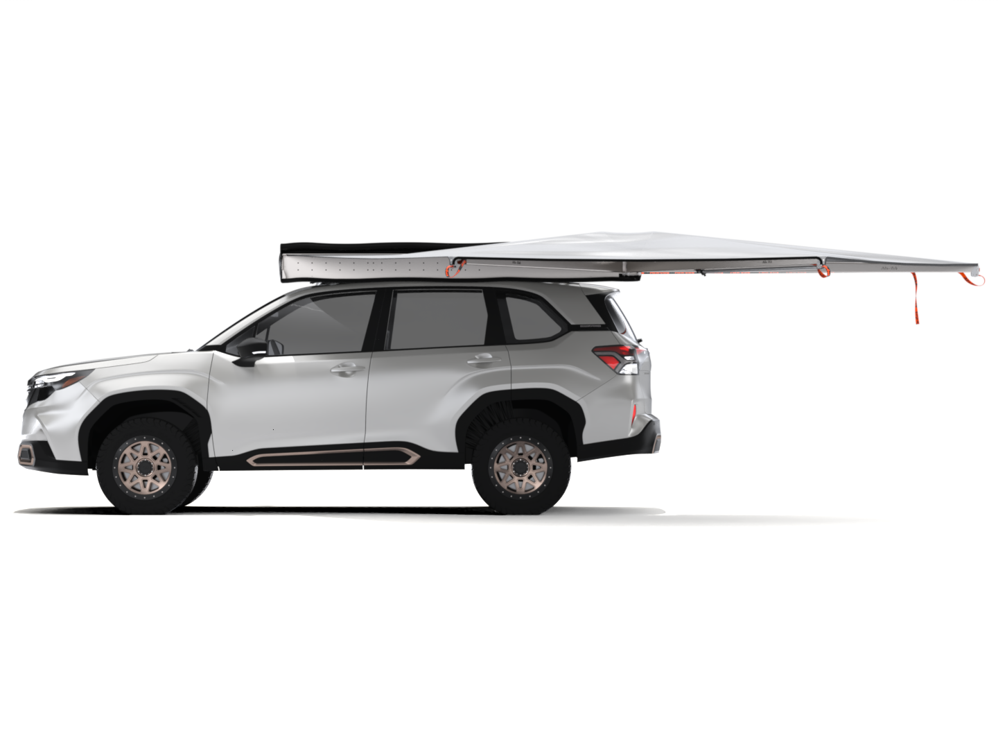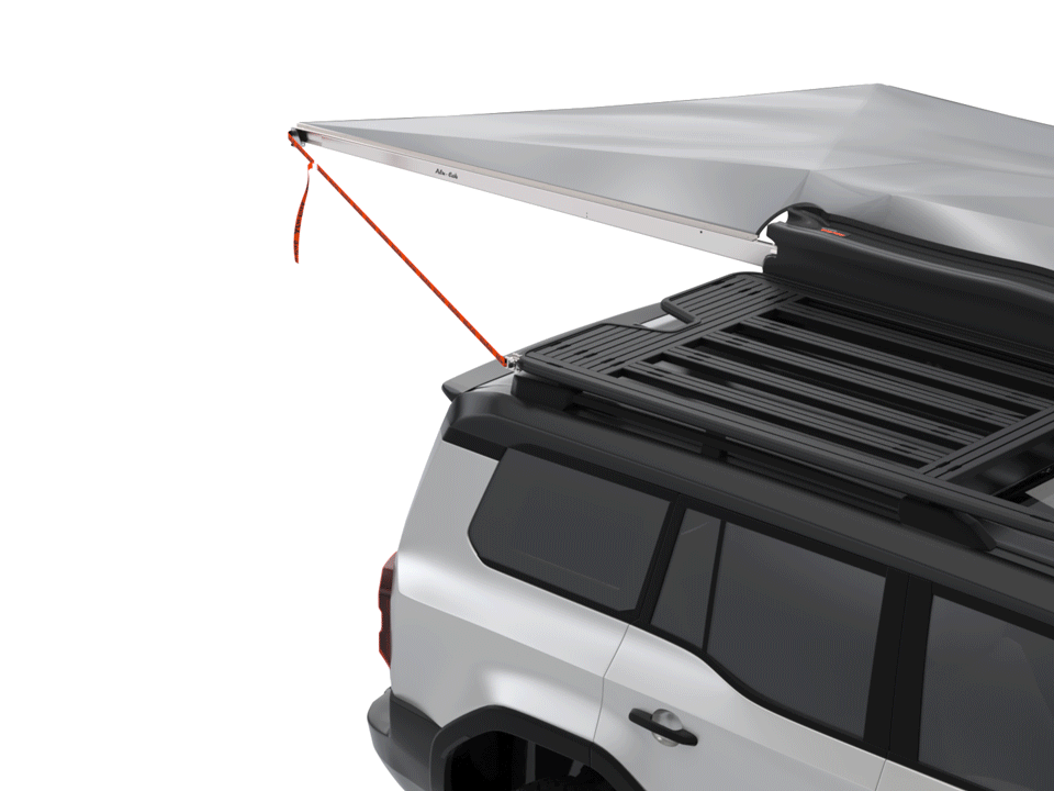 Create a spacious shaded area with a simple unzip and swing! Our 180° Shadow Awning gives you easy access to your vehicle’s rear supplies while providing ample shelter from sun and rain. When it’s time to pack up, it folds neatly and compactly, sitting parallel to your vehicle, ready for your next adventure.