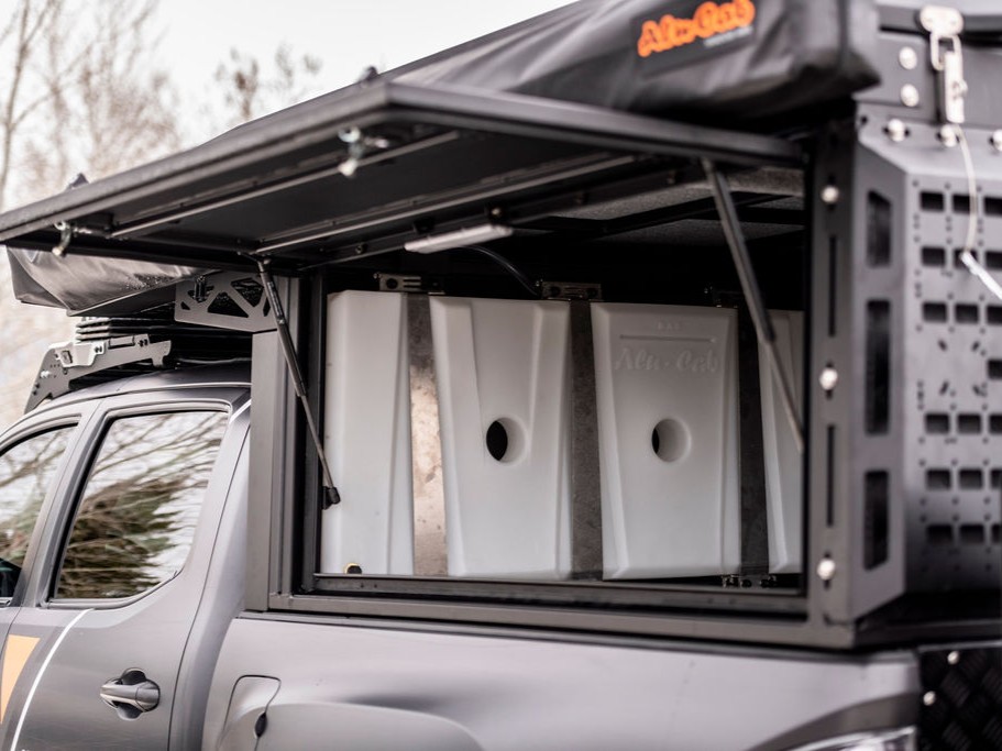 Includes water tank kit only. Compatible with ModCAP and Mid-Size & Full-Size Canopy Campers.