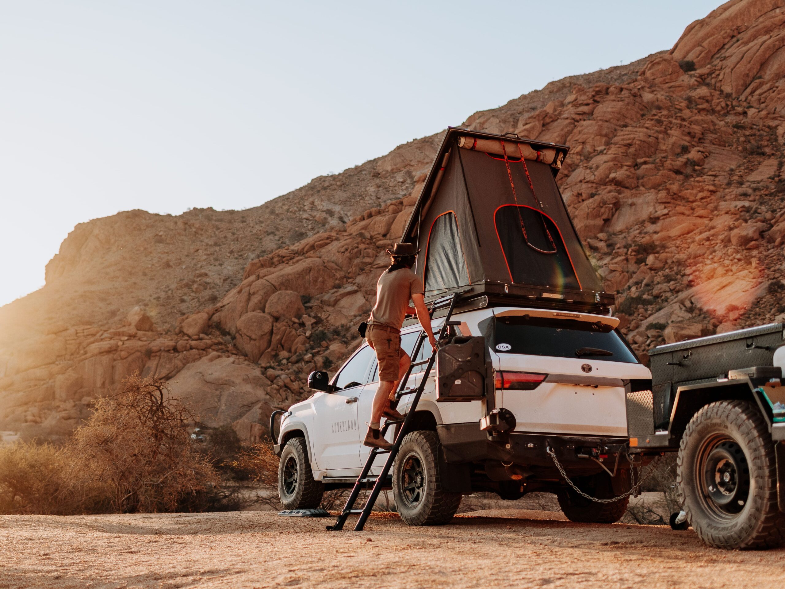 Our Telescopic Ladder extends to your ideal height and collapses down for compact storage. Its wide, angled rungs offer a secure grip and barefoot comfort – perfect for those late-night tent climbs.