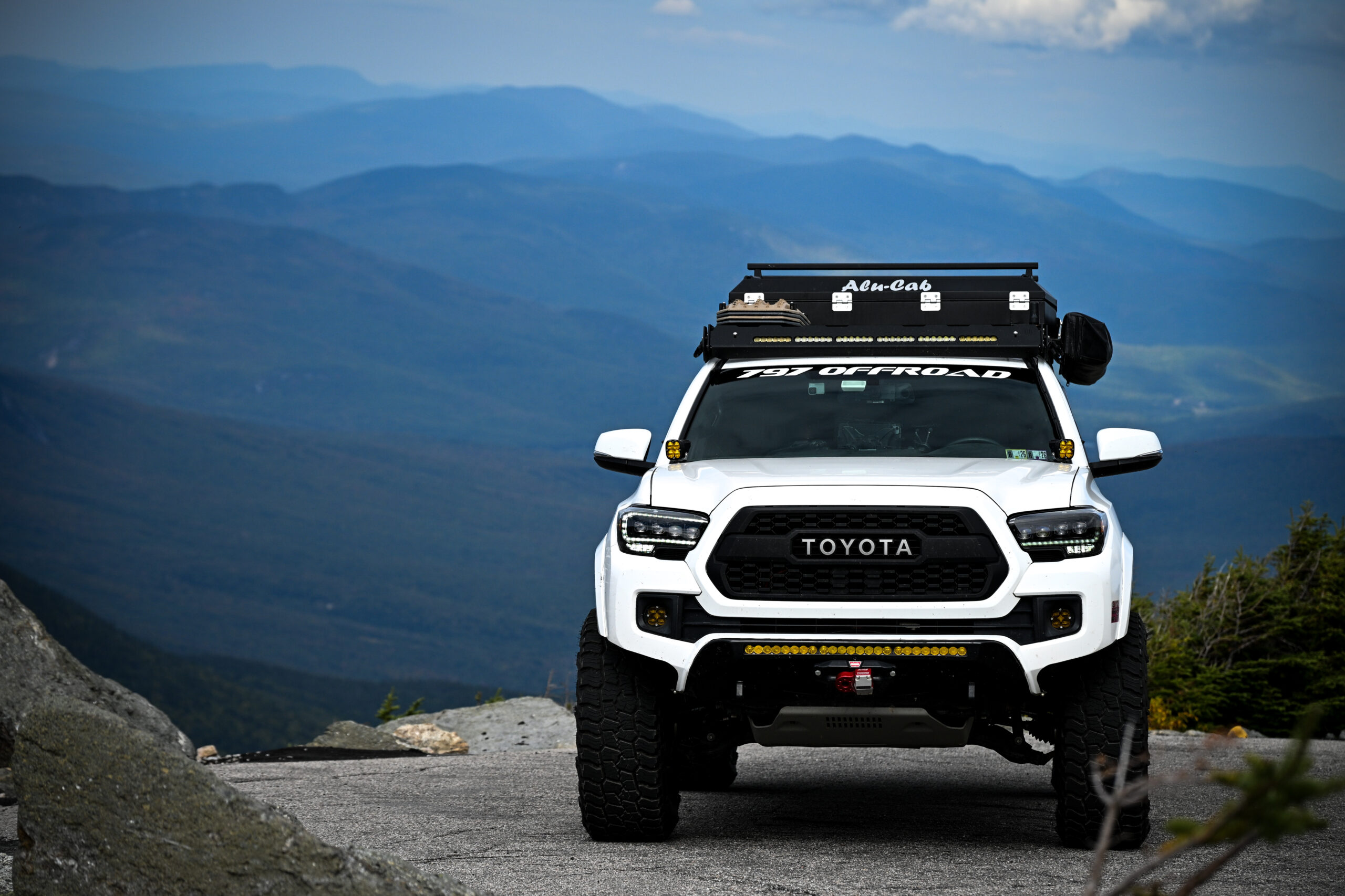 What was an unassuming white truck is now anything but. Franky transformed the 2017 Toyota Tacoma TRD Sport into a capable adventure rig that sits on 35” tires, with lockers and beefed-up suspension.